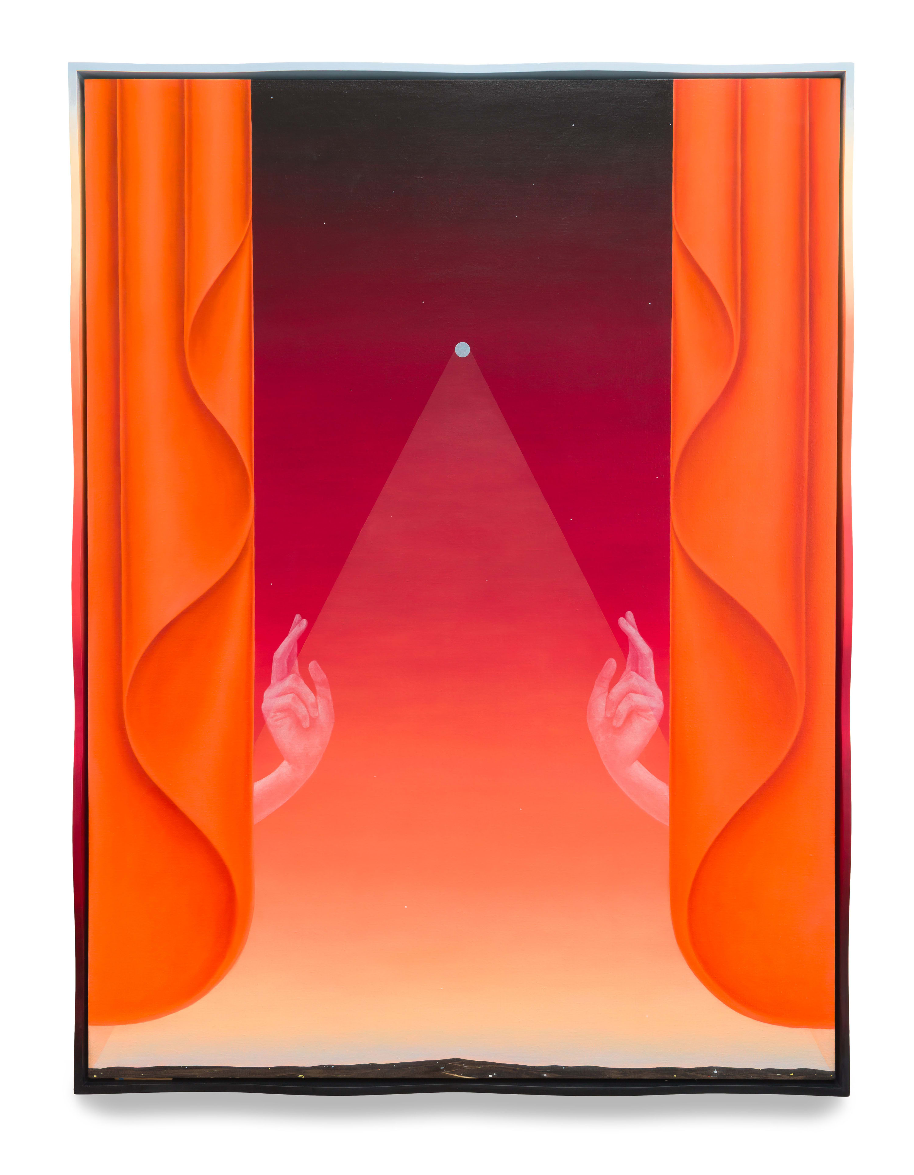 EMILY WEINERMarionettist, 2025Oil on linen in painted wood frame61 1/2 x 46 1/2 x 2 inches