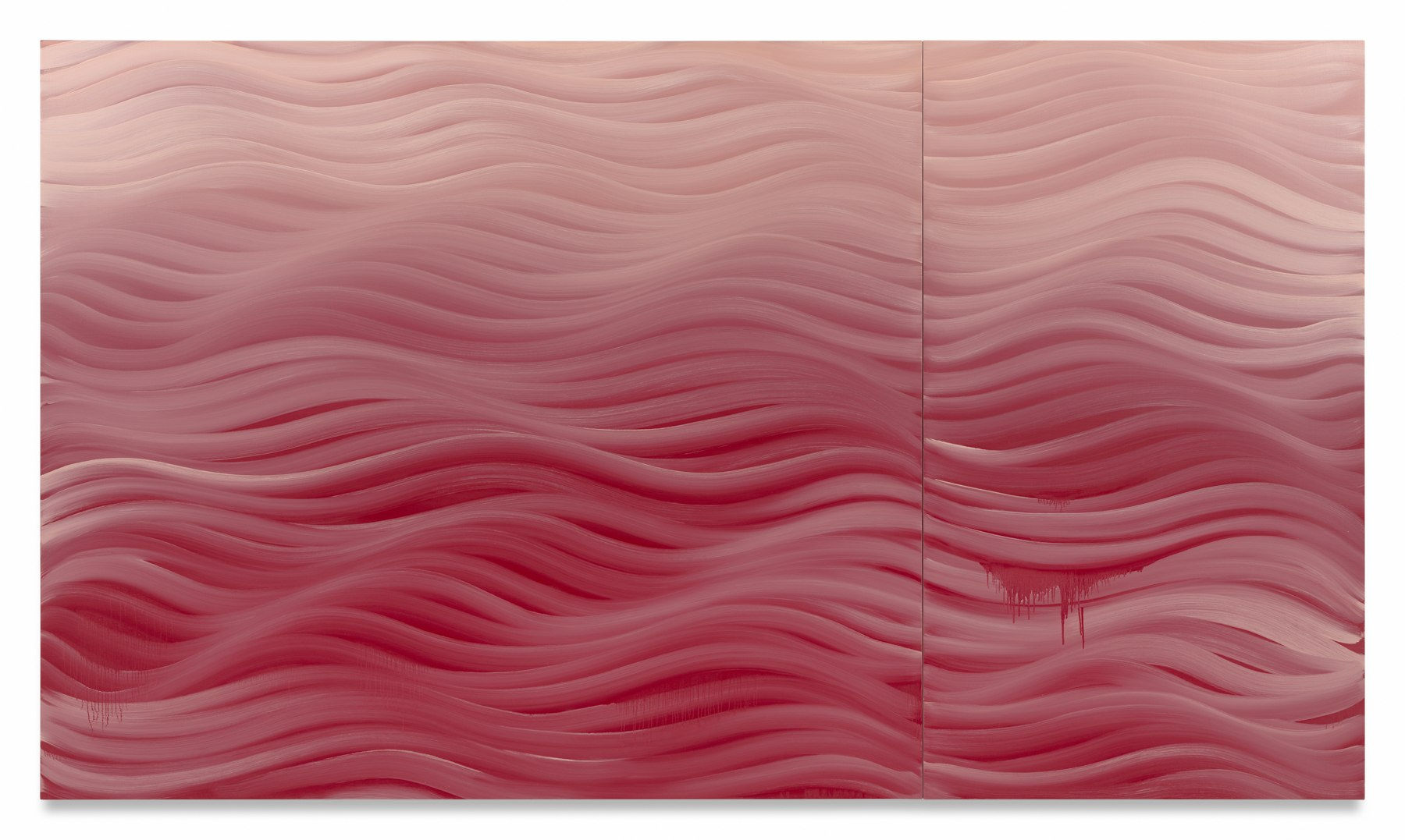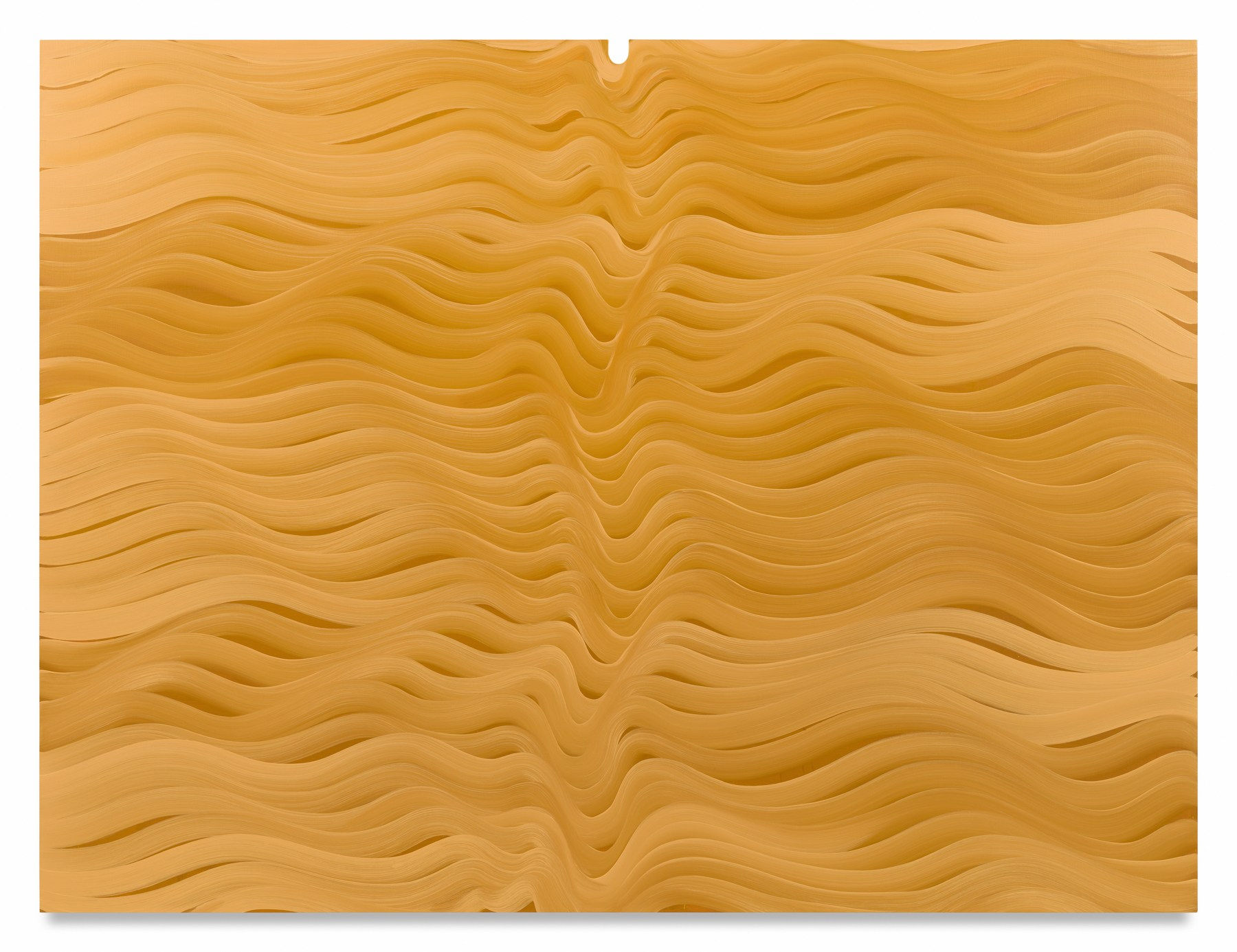 "Davie is best known for her iconic large-scale stripey wave and coil paintings that undulate, bulge and recede. Their trippy sense of animated movement gives them a living, breathing presence. It’s as if a current courses through them, pushing out at viewers and sucking us in. These embodied sensations recall the artist’s own movements in making the work; a structuring tool that engenders not just form but emotion and idea. It’s this incursion into the space of the observer that reveals Davie’s subversive use of the stripe as a catalyst for more than just optical tricks."
